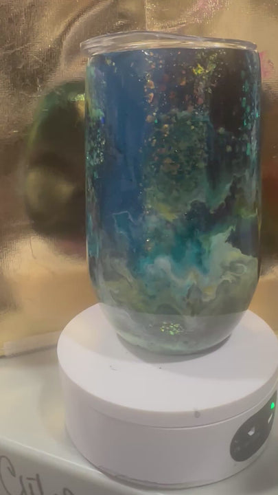 Add a dash of fun and nostalgia to your day with the "beach swirls of blues and glitter” 16 OZ Coffee Mug. Featuring backdrop with sparkling swirls of  accents, this coffee mug is both eye-catching With its durable design and secure lid, it’s perfect for keeping your drinks at the ideal temperature while showcasing a delightful sense of whimsy. Ideal for gifting or brightening your own collection!