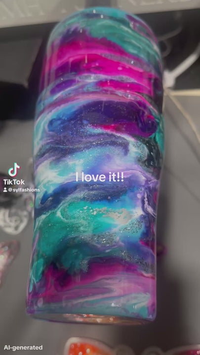 Immerse yourself in the mesmerizing hues of teals, blues, and intricate swirls that flow seamlessly across this tumbler. Accented with a subtle glow, the "Beauty" tumbler is a perfect blend of elegance and artistry for your drinkware collection.
