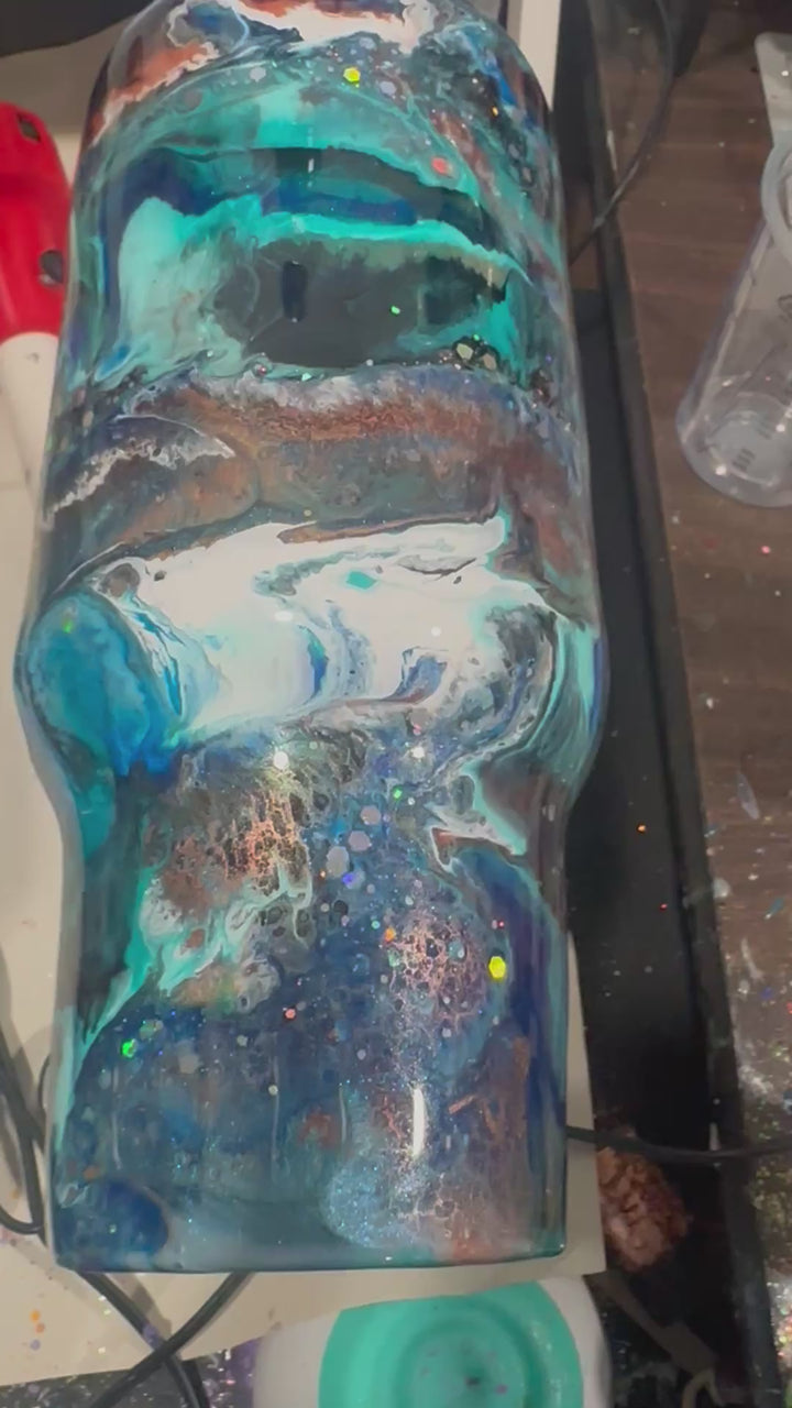 Immerse yourself in the mesmerizing hues of teals, blues golds and intricate swirls that flow seamlessly across this tumbler. Accented with a subtle glow, the "Teal treasure " tumbler is a perfect blend of elegance and artistry for your drinkware collection.